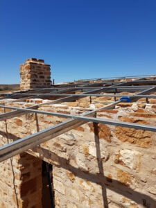 Simon and Tom have strengthened beams and secured the roof iron. Not only will this stop storms and wind ripping it apart further it will protect the inside walls and…
